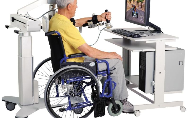 We developed an holistic mechatronic system for the quickest, more economic and very efficient rehabilitation of the cerebral stroke-patients The system supports the patient to perform upper limb movements in the same way that a physician / therapist would help him.